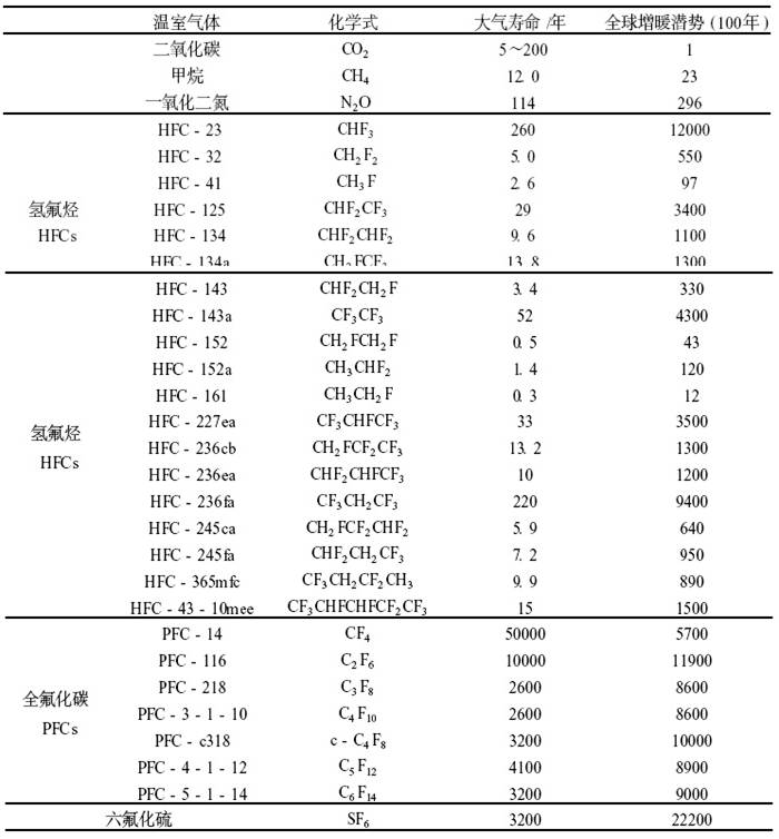更有甚者,全氟化碳PFC(如CF4和C2F6)和六氟化硫SF6也是人为产生的气体,它们大气寿命非常长,对红外辐射有强吸收。所以这些化合物虽然排放量较小,但对未来气候的影响很大。CF4在大气中可以至少存留50000年。它有自然源,但目前的人为排放是自然源的1000多倍,并且是观测到浓度增加的主要原因。一个SF6分子的温室效应是一个CO2分子的22200倍。虽然它目前的大气浓度较低(4.2×10-12),但它的增长速率明显(0.24×10-12/年)。观测到的SF6增长率与根据销售和储存数据而计算所得的排放十分一致。